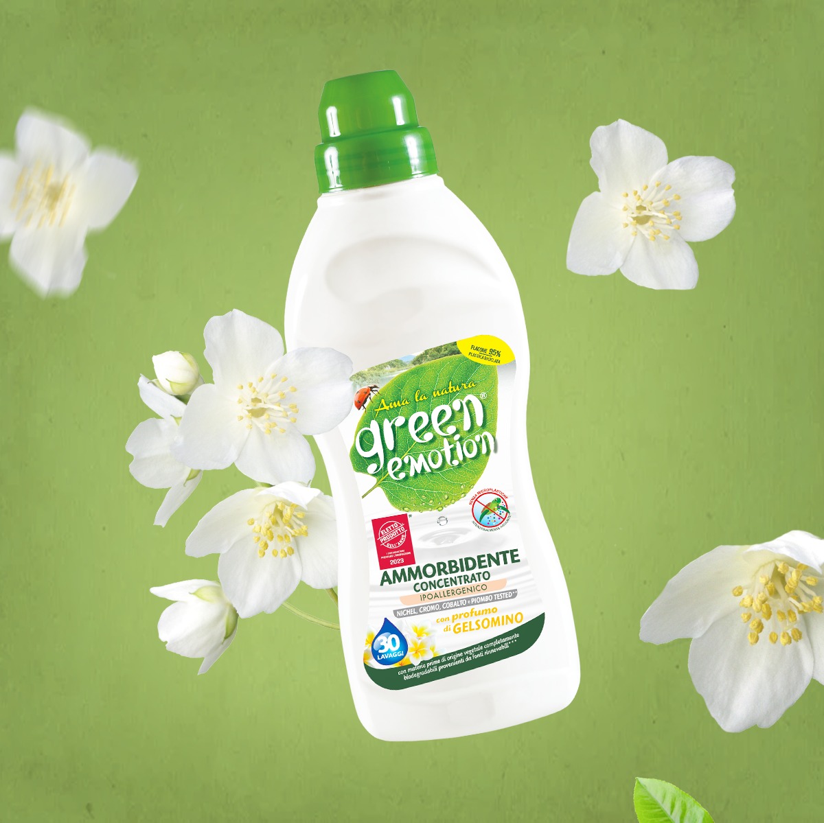 Ενα συμπυκνωμένο μαλακτικό που προσφέρει απαλότητα, ευχάριστη αίσθηση και διακριτικό άρωμα γιασεμιού. Είναι φτιαγμένο και αυτό από πρώτες ύλες φυτικής προέλευσης, είναι υποαλλεργικό, ελεγμένο για βαρέα μέταλλα και χωρίς αλλεργιογόνα στο άρωμα. Η σύνθεσή του προσφέρει έως και 38 πλύσεις, ενώ η φιάλη του είναι από 90% ανακυκλωμένο πλαστικό και πλήρως ανακυκλώσιμη.